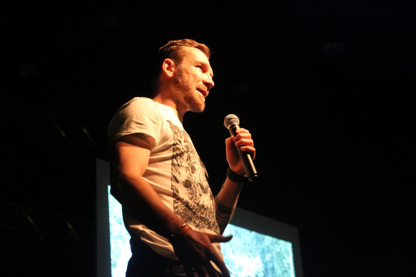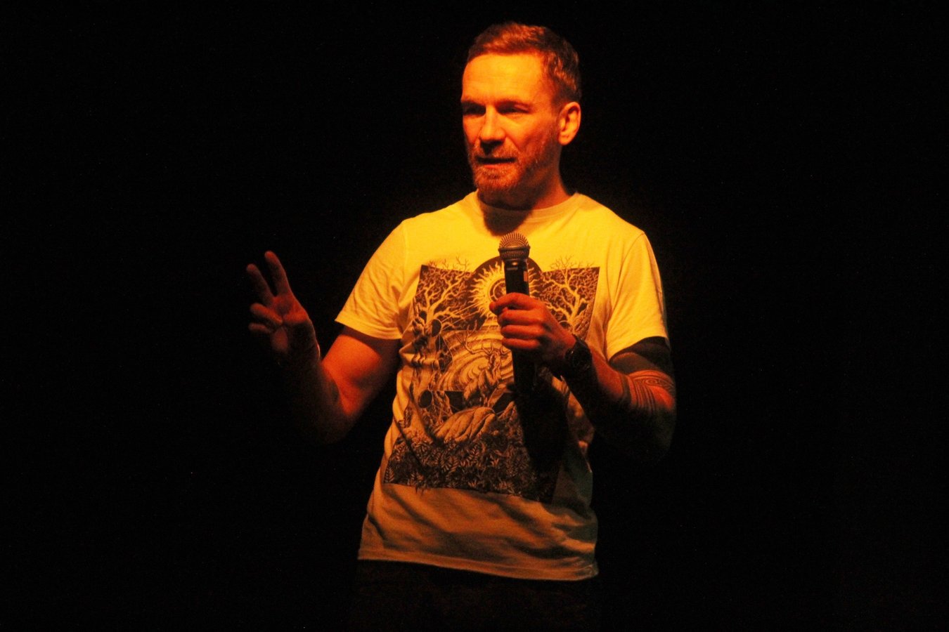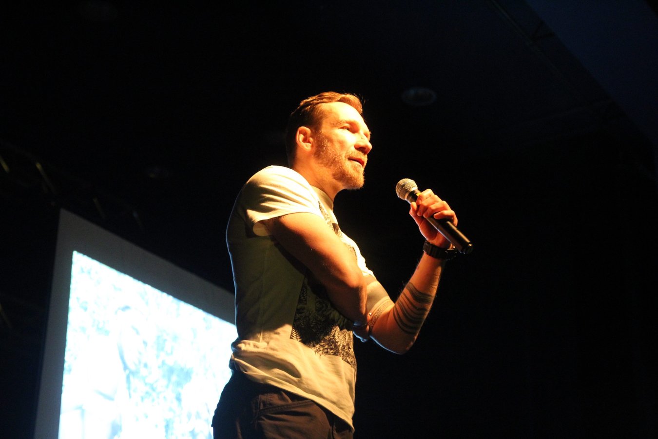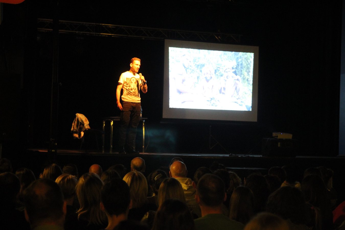 Spotkanie z Przemkiem Kossakowskim miało formę luźnego wykładu, wzbogaconego zdjęciami, ale i humorystycznymi opowieściami o przeżytych przygodach w Papui Nowej Gwinei i Kolumbii.