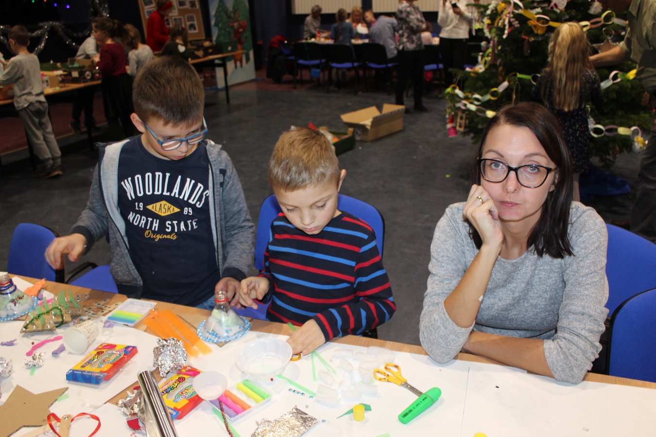 W czasie przedświątecznym Gostyński Ośrodek Kultury "Hutnik" zorganizował świąteczne warsztaty ekologicznych ozdób choinkowych "EKOOZDOBY" dla dzieci i opiekunów. Ideą warsztatów było wykorzystanie niepotrzebnych materiałów, takich jak tektura, rolki po papierze, patyczki po lodach, papilotki do mufinek, papierowe kubeczki czy słomki w celu wykonania oryginalnych i niepowtarzalnych dekoracji choinkowych, którymi uczestnicy przystroili żywą choinkę.