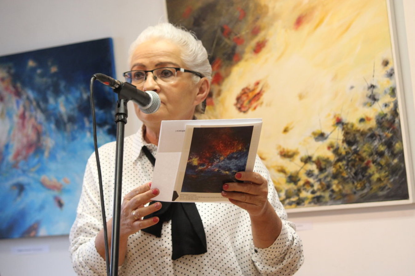 "Wszystko w rękach wyobraźni" to wystawa obrazów dość emocjonalna, bo pod płaszczykiem przedstawianej rzeczywistości można dopatrzyć się drzemiących w artyście emocji. Malarstwo abstrakcyjne, jak podkreśla Szymkiewicz, pomaga mu zanurzyć się w świecie wyobraźni, w świecie form i kolorów. - Mógłbym o każdym z osobna długo opowiadać... - zaczął Stanisław Szymkiewicz. - Ta wystawa o dość enigmatycznym tytule składa się z dwóch części - pierwsza na tej długiej ścianie, spójna - tematycznie i stylowo, natomiast pozostałe prace zostały wykonane w krótkich cyklach - wyjaśniał wybór dzieł Stanisław Szymkiewicz.