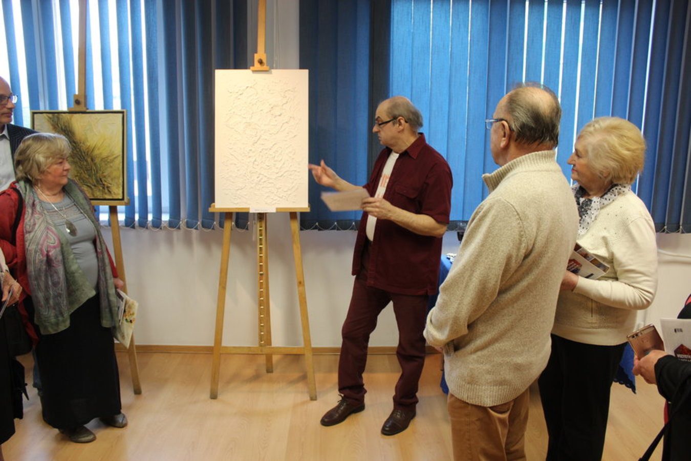 Swoje wystąpienie skupił na jednym obrazie zatytułowanym "Młodość". Był to jedyny obraz na wystawie, któremu brakowało kolorów i nie był to przypadek. - Wszystkie obrazy fakturowe zaczynają powstawać w ten sposób. Potem nabierają pierwszych rumieńców (...) Ten chciałem zrobić inaczej, zatrzymać na tym pierwszym etapie. Z nim można w tej chwili zrobić bardzo wiele – pomalować, oświetlić kilkoma kolorowymi lampami... On ma w sobie potencjał - wyjaśniał artysta. - Każdy mógłby opowiedzieć inną historię na temat każdego z tych obrazów i wszystkie będą prawdziwe. Wszystko w rękach wyobraźni - podsumował Stanisław Szymkiewicz.