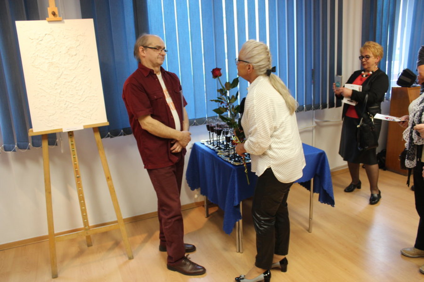 ...gromadząc szerokie grono miłośników sztuk plastycznych, gostyńskich twórców oraz grupę artystyczną z Ostrowa Wlkp. "Alternatywy 33" z Krzysztofem Ryfą na czele. Otwarcia ekspozycji dokonała wicedyrektor Ośrodka Kultury "Hutnik", gratulując i dziękując Stanisławowi Szymkiewiczowi za udostępnienie prac. Marek Ratajczyk z gostyńskiego Klubu Plastyka Amatora o pracach Stanisława Szymkiewicza powiedział: - To obrazy o wyjątkowych wartościach artystycznych, mówiące o intuicji artystycznej.